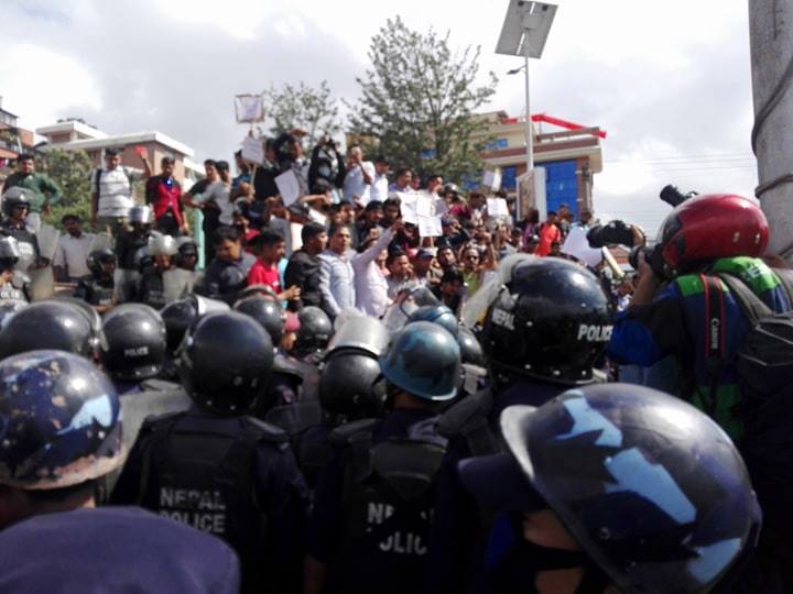 नेपाली कांग्रेसका केन्द्रीय सदस्य एवं नेविसंघका पूर्व अध्यक्ष प्रदिप पौडेलको नेतृत्वमा विद्यार्थीहरुको समूहले निषेधित क्षेत्र तोडेको हो । व्यापक प्रहरी परिचालनका बाबजुद पनि नेविसंघले निषेधित क्षेत्र तोडेको छ ।