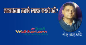 कोरोनाको संक्रमण नफैलियोस भनेर नेपालमा पनि लकडाउन अर्थात बन्दाबन्दी गरिएकोछ। रोगको महामारी हुँदा शारिरिक स्वास्थ्यमा असर पर्ने त हुनेनै भयो। साथै मानसिक स्बास्थ्य समस्याको जोखिम पनि बढेर जान्छ।