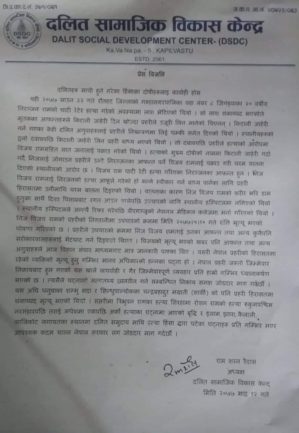दलित सामाजिक विकास केन्द्र द्वारा जारी गरिएको -प्रेस विज्ञप्ति