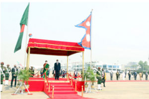 काठमाडौं : राष्ट्रपति विद्यादेवी भण्डारी ढाका पुग्नु भएको छ । दुई दिने राजकीय भ्रमणमा सोमबार भण्डारी ढाका पुग्नुभएको हो । ढाकामा उहाँलाई बंगलादेशी राष्ट्रपति अब्दुल हमिदले हजरत शाहजालाल विमानस्थलमा स्वागत गर्नु भएको छ । भण्डारीलाई विमानस्थलमा २१ तोपको सलामी दिइएको छ ।