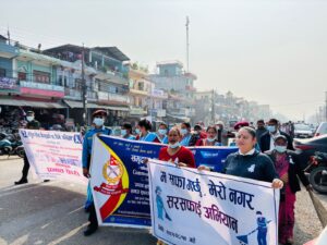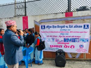 अन्तर्राष्ट्रिय रूपमा १६ दिनसम्म मनाइने लैङ्गिक हिंसा विरुद्धको १६ दिने अभियान सोमबार आजदेखि सुरु भएको छ । ‘हामी सबैको प्रतिबद्धताः लैंगिक हिंसा अन्त्यका लागि ऐक्यबद्धता’ भन्ने राष्ट्रिय नारासहित कपिलवस्तुको बाणगंगा नगरपालिकामा सचेतनामूलक प्रभात फेरी गर्दै अभियान सुरु भएको नगरपालिकाकी महिला, बालबालिका तथा जेष्ठ नागरिक शाखाकी प्रमुख सुसिला पन्थले बताईन् ।