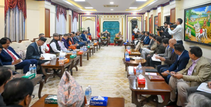 राष्ट्रपति पौडेलले लोकतन्त्रको रक्षाका लागि सबै मिलेर निर्वाचन सम्पन्न गराउनुपर्ने बताए। उनले राजनीतिक दलहरूमा कुनै द्धिविधा र अस्पष्टता भए बैठकमा राख्न आग्रह गर्दै निर्वाचनबाहेक अन्य विकल्प खोज्न थालियो भने यसले देशलाई कहाँ पु¥याउँछ भन्ने पनि सोच्न आग्रह गरे।