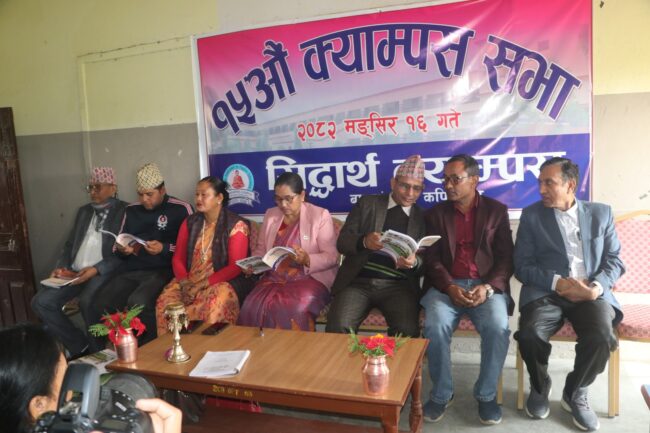 कपिलवस्तु, बाणगंगा नगरपालिका–१ बुङ्चीस्थित सिद्धार्थ क्याम्पसको १५औँ क्याम्पस सभा मंगलबार एक औपचारिक समारोहकाबीच सम्पन्न भएको छ।