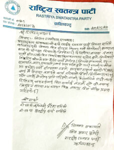 रास्वपा कपिलवस्तुले जिल्ला संगठन विभागको जिम्मेवारी दिएका रिखिराम भट्टराईलाई २४ घण्टे स्पष्टीकरण सोधिएको छ ।