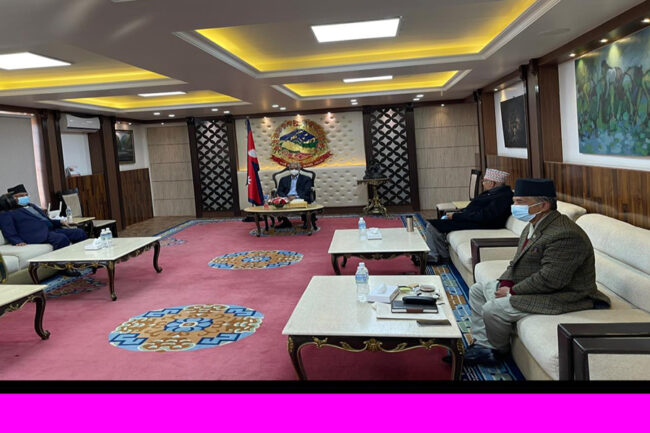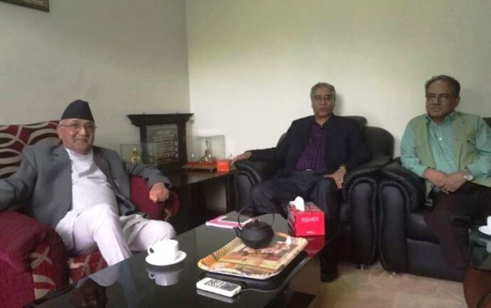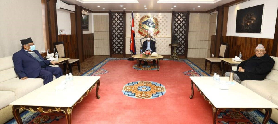 काठमाडौं : सत्तारुढ गठबन्धनका शीर्ष नेताहरुबीच प्रधानमन्त्री निवास बालुवाटारमा भेटवार्ता