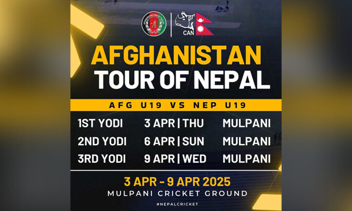 काठमाडौं । नेपाल र अफगानिस्तानको यु-१९ टोलीबीच ओडिआई सिरिज हुने